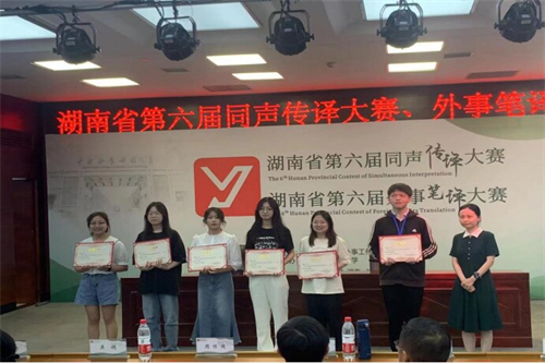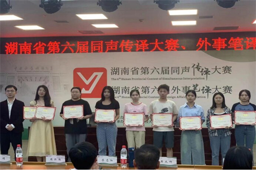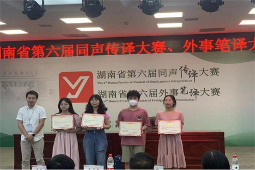 2016年6月至今,湖南省同声传译大赛、外事笔译大赛已经成功举办六届,为湖南省翻译界重要赛事之一。大赛旨在为湖南省外向型经济发展发现和储备高级口译人才和外事笔译人才,推进湖南省外事翻译人才库建设,实现湖南省涉外单位和高级翻译人才的对接。我院将不断推进以赛促学,以赛促优,在今后的比赛中,再接再厉,争取获得更好成绩。